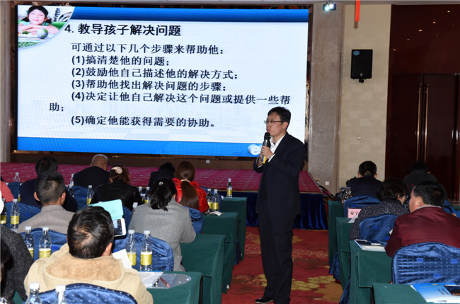 培訓(xùn)會(huì)上,首先為家長(zhǎng)們進(jìn)行培訓(xùn)的是唐立老師,唐老師是家長(zhǎng)培訓(xùn)會(huì)的主講老師,已經(jīng)為好孩子學(xué)校的家長(zhǎng)們進(jìn)行過(guò)10多場(chǎng)的專題培訓(xùn)。本次唐老師帶來(lái)的主題是《家庭教育:著眼現(xiàn)在,還是放眼未來(lái)》,闡述的是孩子的情商培養(yǎng)對(duì)孩子未來(lái)具有決定性的意義。唐老師用他特有的授課方式,走下講臺(tái),拉近與家長(zhǎng)們的距離,激發(fā)家長(zhǎng)們的參與熱情,零距離和家長(zhǎng)們探討孩子們的情感體驗(yàn)和情緒表達(dá),分析孩子們對(duì)待事物的內(nèi)心訴求和行為表現(xiàn)。唐老師運(yùn)用嫻熟的理論知識(shí)和實(shí)踐經(jīng)驗(yàn)為家長(zhǎng)們呈現(xiàn)了一個(gè)個(gè)生動(dòng)的案例,準(zhǔn)確把脈家庭教育的形態(tài),剖析家庭教育忽視的細(xì)節(jié),全面解讀了孩子的情商對(duì)人生和未來(lái)的重要作用和意義。唐老師關(guān)于情商的課題為家長(zhǎng)們打開了一個(gè)不一樣的窗口,讓家長(zhǎng)們認(rèn)識(shí)到孩子有著除智力之外的情感培育地帶,只有重視這個(gè)領(lǐng)域的培養(yǎng),孩子們才能提升各方面的能力,才能順利地走上人生的舞臺(tái)。