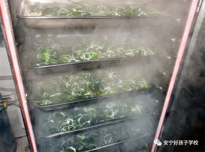 上午9時,在莊嚴的升旗儀式后,師生們開始熱火朝天地包起了粽子。