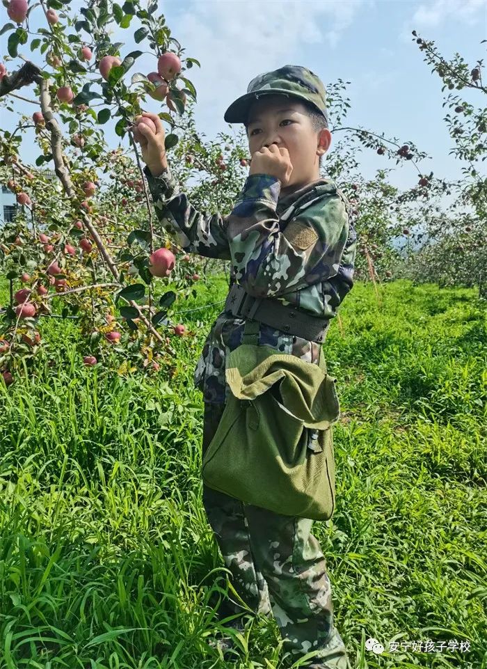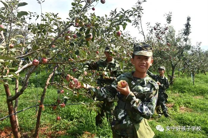 第一站,便來(lái)到了綠色而生態(tài)的有機(jī)蘋(píng)果基地,此基地的蘋(píng)果知名度很高,都是來(lái)自昭通大山里的優(yōu)質(zhì)品種。在蘋(píng)果成熟的季節(jié),空氣中都彌漫著濃郁的果香,走在通往果園的小路上,孩子們顧不上欣賞美麗的田園風(fēng)光,興奮地看著兩旁的果園里那又大又紅的蘋(píng)果,不禁唇齒生津!巴瑢W(xué)們,看好再摘,看中哪個(gè)摘哪個(gè),不能浪費(fèi)”!在老師的一聲號(hào)令下,同學(xué)們分組有序地鉆進(jìn)果園采摘起來(lái)。烈日當(dāng)空,清甜脆爽的蘋(píng)果無(wú)疑是消暑佳品,同學(xué)們摘下自己喜歡的又大又紅的蘋(píng)果,便像“小饞貓”一樣大快朵頤起來(lái)。孩子們滿足地吃著鬧著,這一刻,他們似乎品嘗到的是辛勤勞動(dòng)的快樂(lè),較之蘋(píng)果本身的美味,這份滋味更值得孩子們?cè)谌松拿恳浑A段細(xì)細(xì)品味。