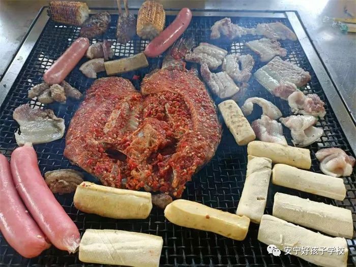 豐盛的午餐是掃除一早疲憊的良方。在老師們的精心準(zhǔn)備下,孩子們親自動(dòng)手開(kāi)始自助燒烤。大家深深知道“自己動(dòng)手,豐衣足食”的道理,一個(gè)個(gè)爭(zhēng)先恐后地幫著揀菜、洗菜,分工明確、進(jìn)展神速。大家一邊燒烤一邊唱歌聊天,燦爛的笑臉競(jìng)相綻放,縷縷青煙伴隨著孩子們的歡聲笑語(yǔ)縈繞在莊園上空。