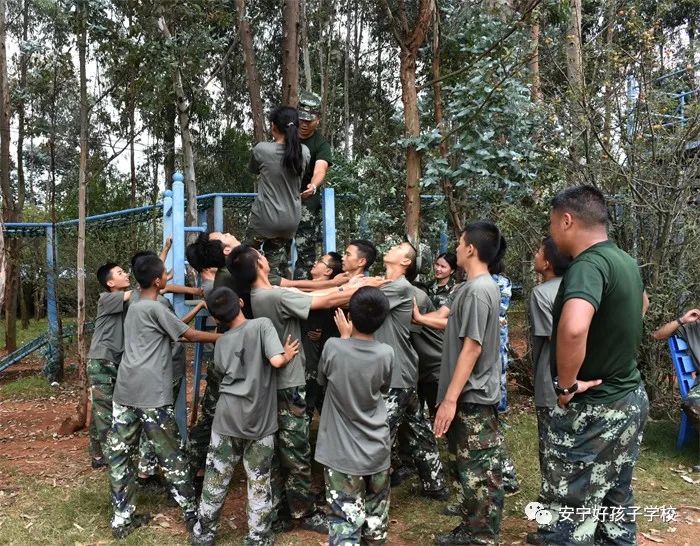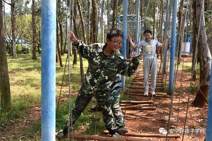 品嘗了特色美味佳肴后,稍作休整,大家便來(lái)到了項(xiàng)目多樣的戶外拓展基地,體驗(yàn)了叢林穿越網(wǎng)繩、蹺蹺板、蕩秋千、蕩橋、攀巖、信任背摔等10余個(gè)項(xiàng)目;顒(dòng)中,孩子們始終保持飽滿的熱情、高昂的斗志,積極參與,用心體會(huì),努力完成著每一個(gè)項(xiàng)目。雖然在挑戰(zhàn)過(guò)程中,有的孩子有過(guò)膽怯、有過(guò)害怕,但在老師的幫助和隊(duì)友們響亮的加油打氣聲中,他們沒(méi)有退縮、沒(méi)有放棄,憑借著頑強(qiáng)的毅力,堅(jiān)定的信念和團(tuán)結(jié)協(xié)作的精神通過(guò)了重重難關(guān)考驗(yàn)。