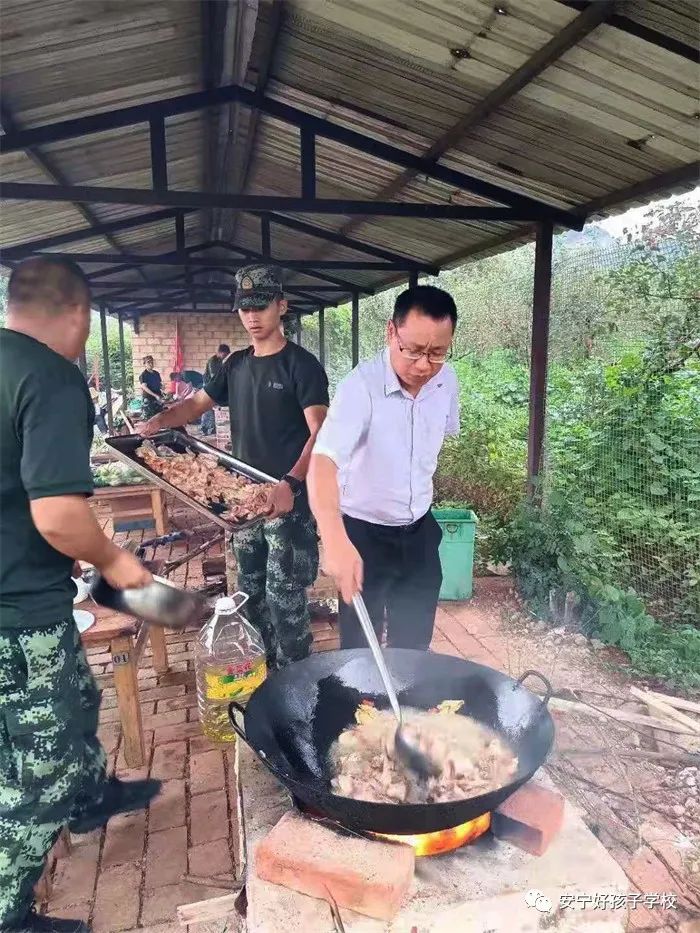 夕陽(yáng)西下,孩子們?cè)诶蠋煹膸ьI(lǐng)下準(zhǔn)備晚餐。拾柴、生火、洗菜、炒菜......大家各展所長(zhǎng),整個(gè)草灘上變得熱鬧起來(lái)。不一會(huì)兒,一陣陣香味撲鼻而來(lái),一盤(pán)盤(pán)讓人垂涎欲滴的菜肴便呈現(xiàn)在同學(xué)們眼前。“開(kāi)席!”隨著尹校長(zhǎng)的一聲令下,大家迅速行動(dòng)起來(lái),紛紛舞動(dòng)著筷子,爭(zhēng)相品嘗著別樣的晚餐。