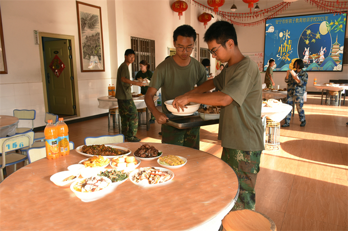 傍晚,全體師生在學(xué)校餐廳共進(jìn)晚餐,大家興高采烈地圍桌而坐。首先,學(xué)校副校長楊玉峰代表學(xué)校向全體師生致以節(jié)日的問候,祝大家中秋節(jié)快樂,并用“感恩、努力、回報”六個字對孩子們寄語了新的希望。