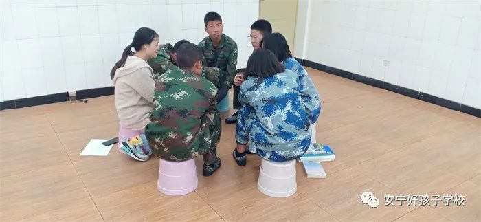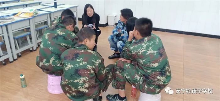 為活躍團(tuán)體氛圍,心理輔導(dǎo)老師們巧妙地設(shè)計(jì)了趣味熱身活動(dòng)。如使用“幸運(yùn)的是……不幸的是……”句型造句接龍;故事接龍——每一成員說(shuō)一故事情節(jié),可以是時(shí)間、地點(diǎn)、人物、事件等,共同編述成一個(gè)完整的故事。“破冰”游戲開(kāi)始后,全員便參與進(jìn)來(lái),瞬間拉進(jìn)了彼此間的心理距離,也為團(tuán)體成員間更進(jìn)一步的交流掃除了障礙。
