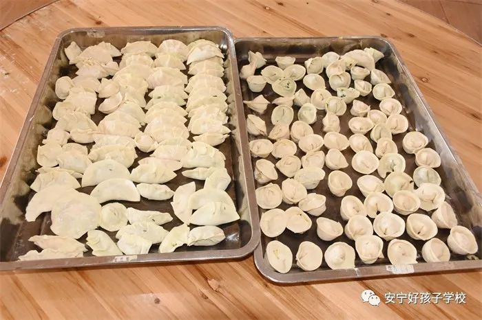 孩子們包出來(lái)的餃子花樣繁多、千姿百態(tài),有敦實(shí)厚重的,有別致精巧的,還有四不像的?粗槐P盤別出心裁但都裹滿愛意的餃子,看著一張張掛滿面粉但都笑容燦爛的面容,吃著香溢滿口的餃子,別樣的新春喜慶連連。