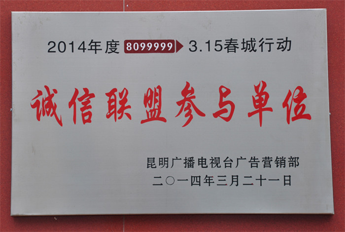 二〇一四年度8099999“3.15”春城行動(dòng)“誠(chéng)信聯(lián)盟參與單位”