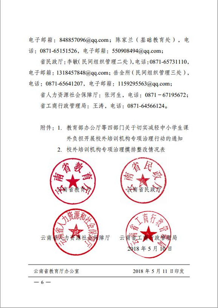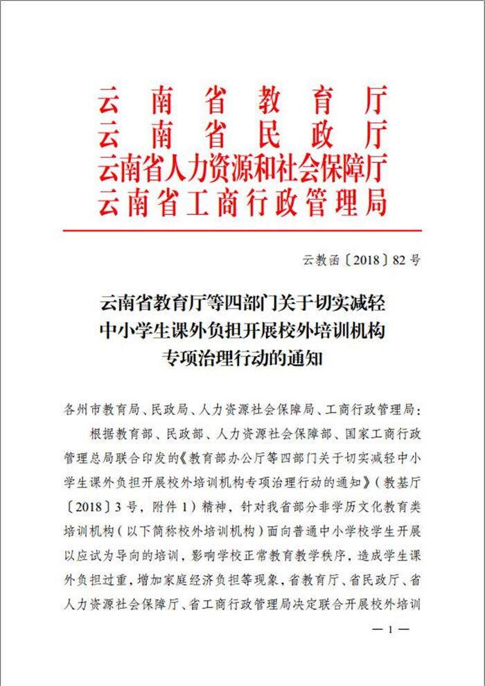 云南省教育廳等四部門關(guān)于切實(shí)減輕中小學(xué)生課外負(fù)擔(dān)開(kāi)展校外培訓(xùn)機(jī)構(gòu)專項(xiàng)治理行動(dòng)的通知