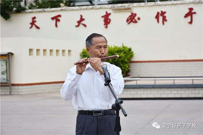 活動(dòng)并未因此落下帷幕,而是進(jìn)入了一場視覺與聽覺的盛宴,我校軍事方隊(duì)表演的《隊(duì)列》,拉開了聯(lián)誼匯演的序幕。孩子們標(biāo)準(zhǔn)的軍事動(dòng)作,既是表演,也是日常訓(xùn)練的檢驗(yàn);緊接著表演的手語《跪羊圖》,也讓我們看到了孩子們感恩的溫情內(nèi)心世界;隨后,安寧關(guān)工委選送的笛子獨(dú)奏《我是一個(gè)兵》,讓大家耳目一新,歡快中不乏堅(jiān)定;《太極扇》孩子們更是看得津津有味,只見表演者動(dòng)作時(shí)而輕柔舒緩, 時(shí)而剛?cè)嵯酀?jì),舉手投足,展示著中國太極功夫以柔克剛、虛實(shí)分明、輕靈沉穩(wěn)的意境;葫蘆絲獨(dú)奏悅耳的絲竹聲,更是無形間浸潤著孩子們的心田。其間,我校孩子們也用平時(shí)所學(xué),用葫蘆絲合奏《荷塘月色》、女兵操《新時(shí)代》、第三套《擒敵拳》等向現(xiàn)場的各位領(lǐng)導(dǎo)展示著小軍人的風(fēng)采,得到了領(lǐng)導(dǎo)們的一致好評。
