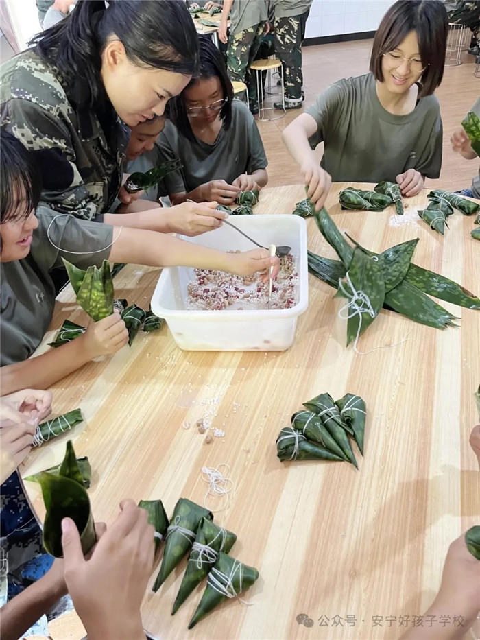 傍晚,香氣四溢的粽子端上餐桌,一桌桌豐盛的美食呈現(xiàn)在師生面前。孩子們一邊吃著豐盛的晚餐,一邊迫不及待地解開升騰著熱氣的粽子,心滿意足地品嘗著自己的“作品”,笑容分外甜蜜。鏡頭下,孩子們紛紛向父母、老師送上節(jié)日祝福,與同學(xué)相互勉勵,現(xiàn)場氛圍溫馨而美好。