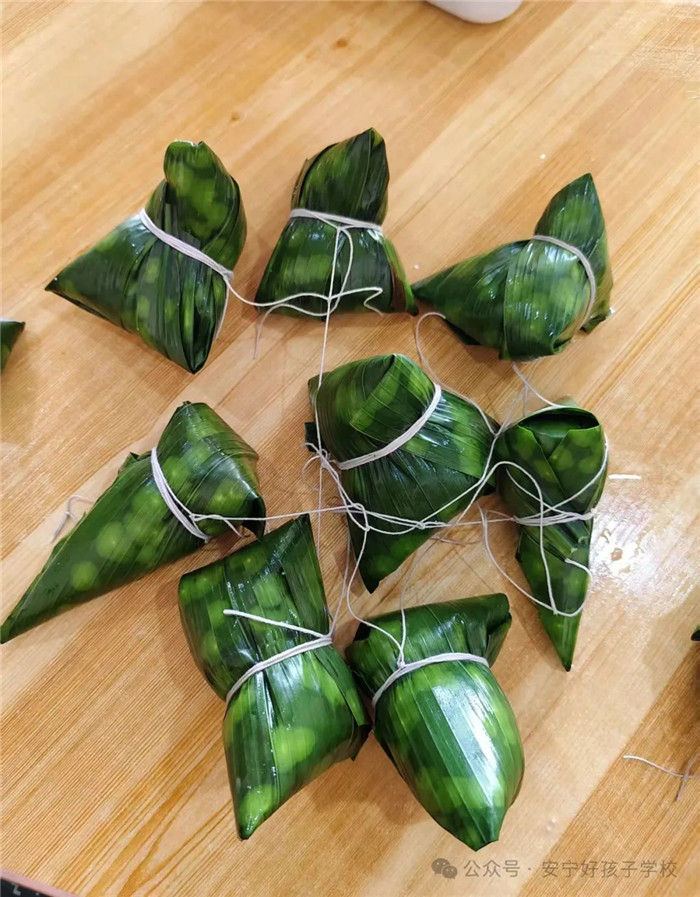 上午,學(xué)校餐廳歡聲笑語,熱鬧非凡。孩子們在老師的帶領(lǐng)下,熱火朝天地清洗粽葉,隨后,展開了如火如荼的包粽子活動。在老師的精心指導(dǎo)下,只見孩子們雙手靈巧地穿梭在翠綠的粽葉間,按照“一折葉、二盛料、三壓實、四包裹、五扎繩”的步驟,將香甜的糯米包裹進(jìn)粽葉,再用細(xì)細(xì)的棉線纏繞扎實。不一會兒,一個個形態(tài)各異、大小不一的粽子便誕生了。這些飽含美好祝福的粽子,不僅是孩子們勞動的成果,更承載著他們對傳統(tǒng)文化的熱愛。