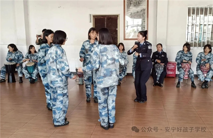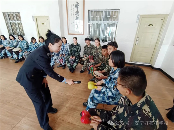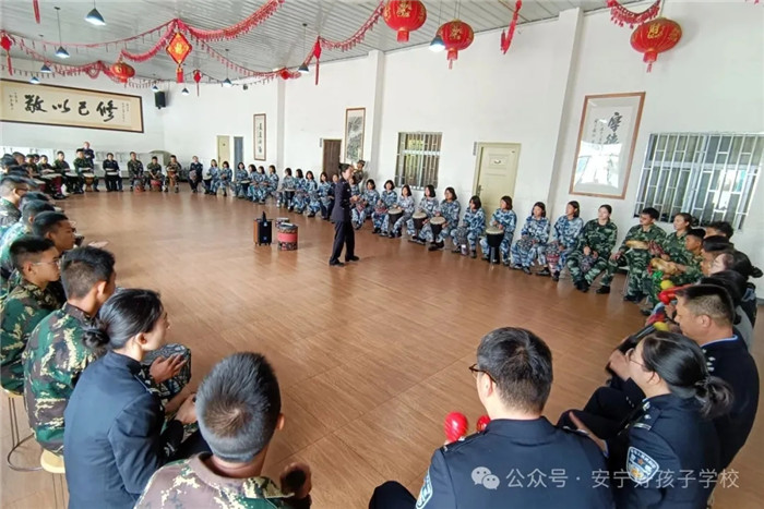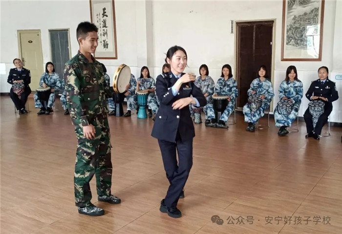 專題講座后,“鼓舞悅動煥心聲”團(tuán)體輔導(dǎo)活動將現(xiàn)場氛圍推向高潮。省二所教育矯治科副科長錢錦彩運(yùn)用前沿的“音樂療法”理念,帶領(lǐng)學(xué)生們體驗(yàn)非洲鼓、沙錘、鈴鼓等樂器的獨(dú)特魅力。從基礎(chǔ)節(jié)奏教學(xué)入手,指導(dǎo)學(xué)生掌握簡潔明快的節(jié)奏要點(diǎn),隨后引導(dǎo)大家跟隨指揮默契配合,共同演奏樂曲。
