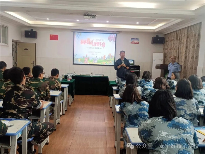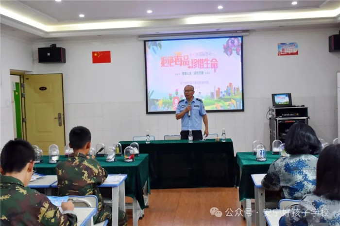 隨后,楊副主任和羅警官化身“安全守護者”,針對青少年好奇心旺盛、辨別能力薄弱、抗毒能力不足的心理特點,以一樁樁真實且觸目驚心的沉痛案例為切入點,用詳實的數(shù)據(jù)和鮮活的血淚故事,抽絲剝繭地揭示毒品的致命危害。從傳統(tǒng)毒品的成癮機理,到新型毒品“奶茶粉”“開心水”的偽裝陷阱;從個人健康的不可逆損害,到家庭破碎的慘痛代價,乃至社會和諧穩(wěn)定的嚴重破壞,講解層層遞進、直擊心靈。羅警官語重心長地告誡同學(xué)們:“毒品絕非新奇體驗,而是通向深淵的單程票,一時的獵奇沖動,可能換來終身的枷鎖。毒品危害如洪水猛獸,一旦沾染便萬劫不復(fù)! 他呼吁大家樹立正確的價值觀,培養(yǎng)積極健康的生活方式,以理性平和的心態(tài)面對成長挑戰(zhàn),強化自我保護意識,做到潔身自好、謹慎擇友,堅決恪守“不好奇、不靠近、不嘗試、不僥幸、不交毒友”的“五不”原則,從源頭上杜絕與毒品的接觸。