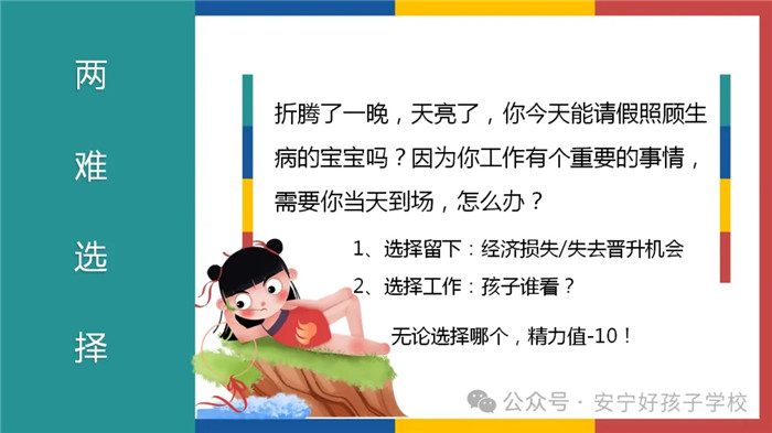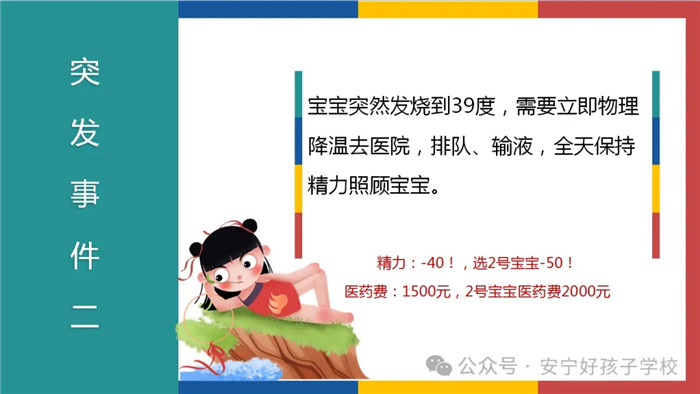 當同學們好不容易熬過前面的關卡,以為最難的部分已經(jīng)順利通過時,張老師又拋出了終極考驗,猶如“暴擊三連”。腸脹氣寶寶哭鬧不停,怎么哄都無濟于事;寶寶突發(fā)高燒,必須緊急送醫(yī);還有工作和帶娃的兩難抉擇,一邊是重要的工作任務,一邊是生病的孩子,讓人分身乏術。一位同學看著已成為負數(shù)的“精力值”,喃喃自語道:“我終于理解我媽為什么總說恨不得把自己劈成兩半了,照顧小孩真的太難了!”看著模擬賬單上高額的費用,有同學小聲嘀咕:“原來我小時候這么燒錢……”這一刻,許多同學第一次認真計算起父母多年來為自己的成長所付出的巨大心血。