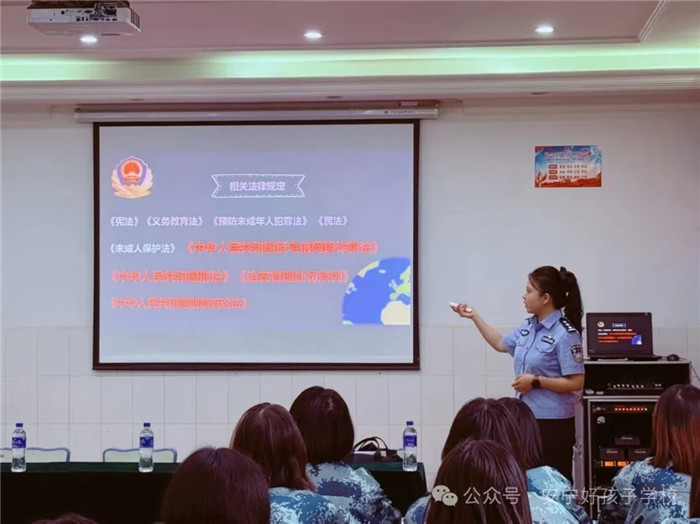 為進(jìn)一步增強(qiáng)我校師生的法治觀念,營造安全、和諧的校園環(huán)境,2025年8月22日,安寧市公安局連然派出所黃韻璇警官走進(jìn)我校為全體師生帶來了一場生動實(shí)用的“守護(hù)青春之美”法治專題講座。
