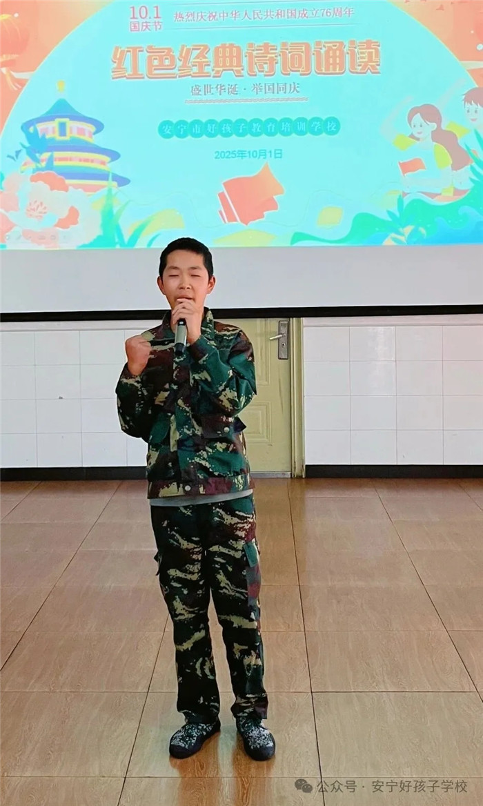隨后的“紅色經(jīng)典詩(shī)詞誦讀”活動(dòng)同樣精彩紛呈。從《沁園春·雪》的豪邁壯闊,到《七律·長(zhǎng)征》的堅(jiān)韌不屈;從《少年中國(guó)說》的朝氣蓬勃,到《我驕傲,我是中國(guó)人》的熱血沸騰...... 同學(xué)們或獨(dú)誦、或合誦,搭配生動(dòng)的肢體語言與情感飽滿的語調(diào),將詩(shī)詞里的紅色故事娓娓道來。臺(tái)下師生仿佛穿越時(shí)空,在朗朗書聲中重溫革命歲月,讓紅色文化浸潤(rùn)心靈。