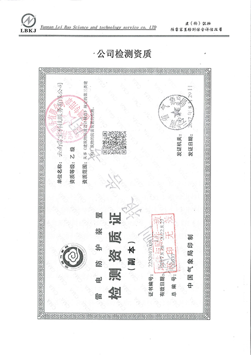 2019年6月26日,為有效預(yù)防和遏制雷電災(zāi)害事故的發(fā)生,我校特委托云南雷寶科技服務(wù)有限公司對我校的辦公樓、教學(xué)樓、食堂等各建(構(gòu))筑物、供配電系統(tǒng)、設(shè)備設(shè)施及各裝置安裝的防雷設(shè)施進(jìn)行全面檢測,以及對“防直擊雷裝置”、“防閃電感應(yīng)裝置”、“電涌保護(hù)”、“等電位連接”等防雷裝置進(jìn)行安全評估,共對24個(gè)防雷測試點(diǎn)進(jìn)行了接地性能參數(shù)檢測。經(jīng)檢查,各項(xiàng)指標(biāo)均符合國家現(xiàn)行防雷規(guī)范的要求與指標(biāo),并向我校出具了書面檢測報(bào)告。