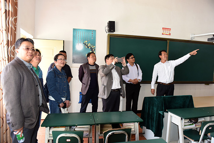 考察團(tuán)一行首先參觀了學(xué)校的孔子雕像、辦公樓、教學(xué)樓、食堂、學(xué)生宿舍、監(jiān)控等硬件設(shè)施,并在多媒體教室觀看了學(xué)校教學(xué)活動短片。