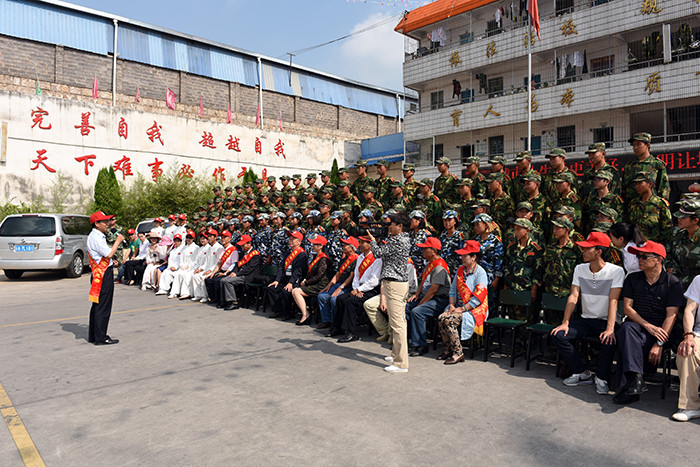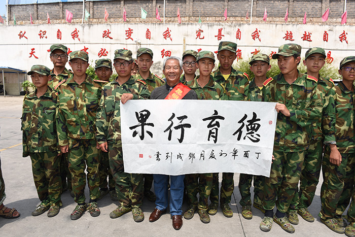 在隨后的合影過程中,趙久詩主任、王永麗書記、李庭貴主任分別作了講話。趙主任指出:關(guān)工委是黨和政府教育青少年的參謀和助手,是聯(lián)系青少年的橋梁和紐帶;學(xué)校要堅(jiān)持不懈地以社會(huì)主義核心價(jià)值觀體系教育、引領(lǐng)青少年,為培養(yǎng)合格的社會(huì)主義建設(shè)者和接班人做出應(yīng)有貢獻(xiàn);孩子們要珍惜這里的時(shí)光,修身養(yǎng)性,把最好的自己帶回家庭、學(xué)校和社會(huì)。由于趙主任是部隊(duì)出身,講到動(dòng)情處,趙主任還情不自禁地向同學(xué)們下了“稍息”“立正”“向右看齊”“向前看”的口令,并向同學(xué)們敬禮,大家都非常感動(dòng)。合影之后,領(lǐng)導(dǎo)們還為孩子們分發(fā)了創(chuàng)建全國(guó)科普示范市專用記錄本。