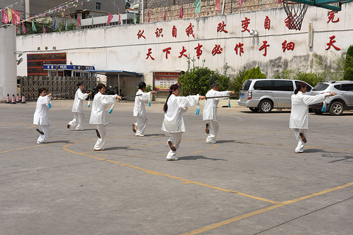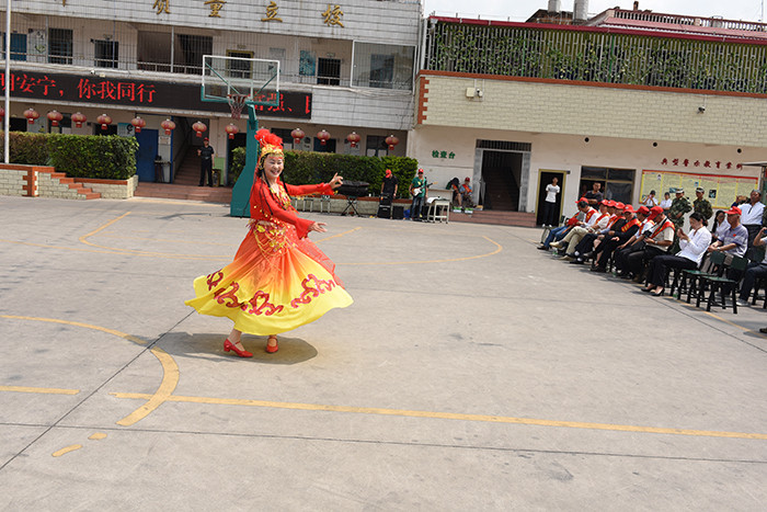 活動(dòng)并未因此落下帷幕,而是進(jìn)入了一場(chǎng)視覺和聽覺的盛宴。安寧老科協(xié)藝術(shù)團(tuán)林峰樂隊(duì)的一首《感恩的心》把文藝表演拉開序幕,緊接著由安寧太極拳協(xié)會(huì)選送的《中國(guó)功夫扇》《太極劍》,孩子們更是看得津津有味。只見表演者動(dòng)作時(shí)而輕柔舒緩、時(shí)而剛?cè)嵯酀?jì),一招一式,融入了五千年的中華文明;舉手投足,展示著中國(guó)太極功夫以柔克剛、虛實(shí)分明、輕靈沉穩(wěn)的意境。隨后由趙云玲老師帶來的民族獨(dú)舞《歡樂的跳吧》,讓操場(chǎng)的氣氛更加火熱起來,大家跟著節(jié)拍,扭動(dòng)著身子,沉浸在歡樂的海洋中。