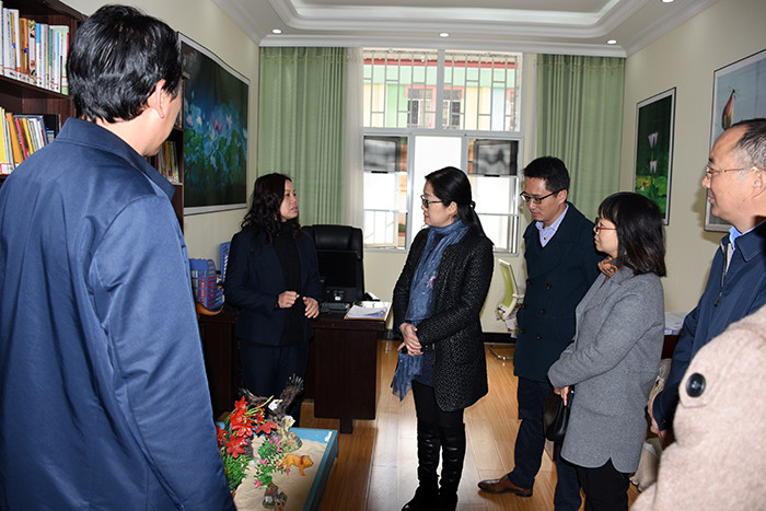 學校校長、副校長周榕樺、毛積敏、辦公室主任單官昱、心理教研組組長周雪等校領導陪同調研。
