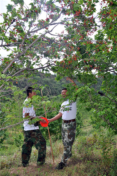 2016年5月4日上午,我校副校長兼總教官毛積敏帶領部分師生到安寧青龍界牌村櫻桃園為學生采摘櫻桃。
