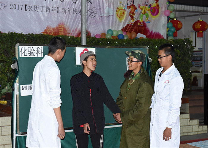 節(jié)目開始前,魯校長作了新年致辭,簡要回顧了16年的工作,并對新一年的工作提出了要求。接下來,一支《Ppap起來嗨》舞蹈拉開了晚會序幕,之后的節(jié)目內(nèi)容豐富多彩,有舞蹈、小品、啞劇、相聲、鋼琴獨奏、葫蘆絲演奏、吉他彈唱等,同學們的表演精彩絕倫、惟妙惟肖,臺下的掌聲和歡呼聲經(jīng)久不息,把現(xiàn)場的氣氛一次次推向了高潮,舞蹈《青春修煉手冊》更是把大家?guī)肓藲g樂的海洋。