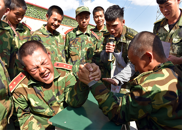 下午,首先進(jìn)行的是大力士——扳手勁比賽。同學(xué)們?cè)缭缇驮诓賵?chǎng)上擺好桌椅等待比賽,隨著一聲哨響,比賽正式開始了。同學(xué)們摩拳擦掌地坐到了指定位置,開始“戰(zhàn)斗”起來,每位選手都緊緊地握住對(duì)方的手,卯足了勁往自己這邊扳。有的由于力量懸殊,很快敗下陣來;有的趁對(duì)方不備,猛往自己懷中一壓,還沒等對(duì)方反應(yīng)過來,手已經(jīng)被壓在桌上了;有的相持不下,鼓著腮、瞪著眼,臉漲得像個(gè)紅蘋果;有的不甘示弱,拼命想把對(duì)方的手壓下去,無奈還是沒有還手之力。場(chǎng)上的啦啦隊(duì)員,有的在揮手喊加油,有的急得直跺腳,有的不停地說道“不行,不行,他太強(qiáng)了!”操場(chǎng)上可謂是一番熱鬧至極的景象。
