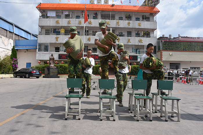 上午,孩子們把被子卷起抱于懷中,進(jìn)行日常生活,如掃地、洗衣、撿菜、沿著操場上設(shè)置的障礙物行走等,模擬母親養(yǎng)育自己的艱辛。緊緊只是兩小時的時間,孩子們就累得叫苦連連,也是此時此刻孩子們才明白,母親是何等的不易,對母親的思念也顯得愈加強(qiáng)烈!