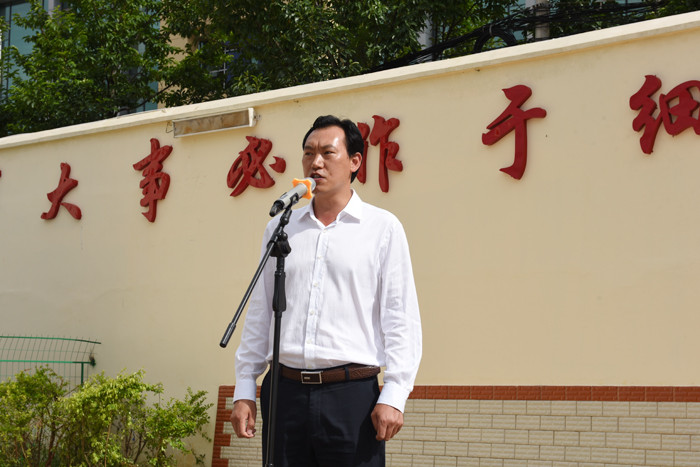 上午9時30分,升旗儀式正式開始,師生們肅立注目,伴隨著莊嚴的國歌聲,鮮艷的五星紅旗在嶄新的校園里冉冉升起。儀式上,魯校長充分肯定了新校區(qū)建設(shè)和搬遷工作,勉勵同學(xué)們在新的校園應(yīng)該有新的目標和新的氣象,堅定理想信念,端正學(xué)習(xí)態(tài)度,培養(yǎng)良好習(xí)慣,嚴格要求自己,學(xué)會自我管理,樹立正確的人生觀、價值觀。在學(xué)校做到政治合格、軍事過硬,傳承好孩子學(xué)校的優(yōu)良傳統(tǒng)作風(fēng),發(fā)揮特長,真正改變自己。走向社會,做一名有理想、有文化、有道德、有紀律的合格公民。