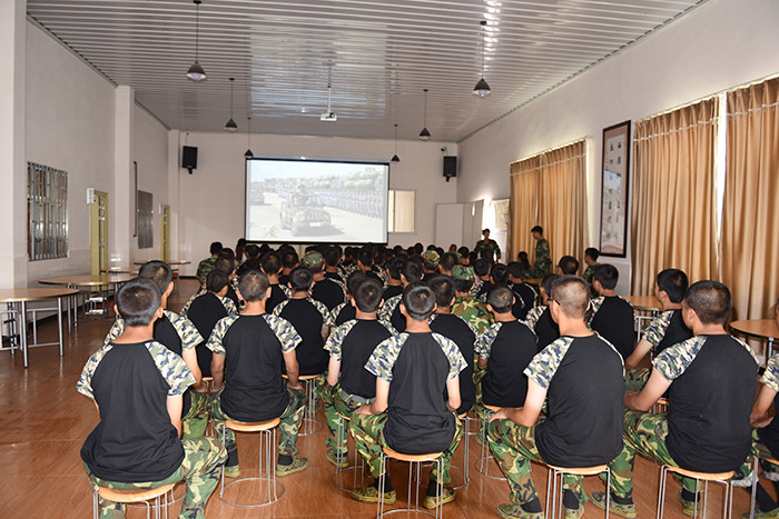 下午,全校師生喜氣洋洋,歡聚在學校餐廳。活動開始,魯校長作了致辭,他表示:“觀看閱兵式既是一堂思想政治教育課,也是一堂生動的愛國主義教育課。 我校是一所軍事化管理的學校,同學們更應該以軍人的標準來要求自己,爭做社會主義的建設者和接班人!