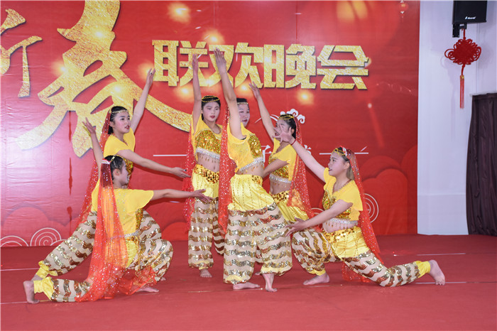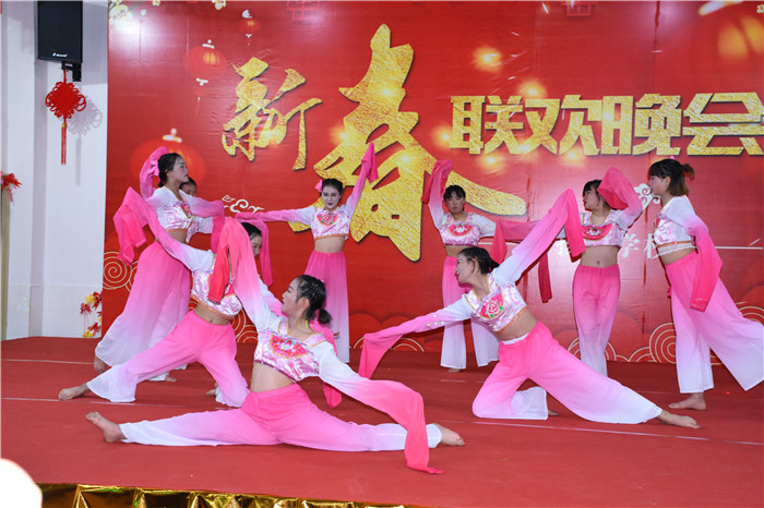 接著,伴隨著一排女生們帶來的開場舞《開門紅》,晚會正式拉開帷幕。之后的節(jié)目內(nèi)容豐富多彩,有舞蹈、小品、葫蘆絲演奏、合唱等。女生們舞姿溫婉靈動,男生們舞步大氣磅礴;剛?cè)岵、異彩紛呈的舞蹈迅速點燃了全場觀眾的熱情,把場上氣氛一次次推向高潮。小品《文明城市做文明人》更是把大家?guī)肓藲g樂的海洋。
