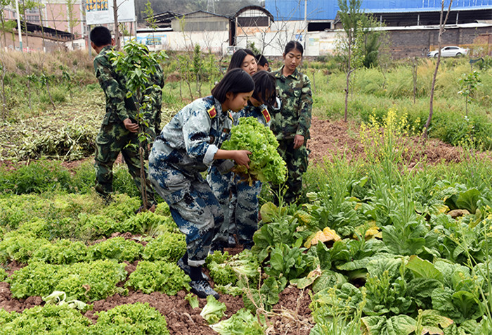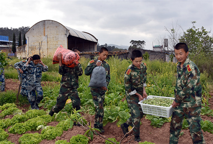 在老師的帶領(lǐng)下,孩子們興奮地走進(jìn)農(nóng)場(chǎng)開始干活。拔雜草、鋤地、澆水、摘蠶豆、豌豆、摘生菜、香菜..... 別看有的孩子年齡小,可干起活來十分帶勁,一個(gè)個(gè)忙得不亦樂乎。看著孩子們忙碌的身影,總教官毛積敏樂得呵呵直笑。