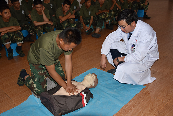 本次培訓(xùn),朱醫(yī)生用通俗易懂的語(yǔ)言,從日漸增多的意外傷害入題,對(duì)現(xiàn)實(shí)生活中遇到的異物梗阻、溺水防護(hù)、觸電防護(hù)等突發(fā)事件應(yīng)采取的有效救護(hù)措施。并著重講解了心肺復(fù)蘇的動(dòng)作要領(lǐng),孩子們興趣高漲,朱醫(yī)生讓孩子們對(duì)現(xiàn)場(chǎng)假人進(jìn)行模擬演練,并逐一指導(dǎo),每人都要過(guò)關(guān)才行。每做完一周期的心臟按壓,孩子們都覺(jué)得特別累,更深深地體會(huì)到了醫(yī)護(hù)人員的不易。隨后,朱醫(yī)生還對(duì)創(chuàng)傷救護(hù)的止血、包扎、固定、搬運(yùn)也作了解說(shuō)與演示,指出了平常生活中的應(yīng)急誤區(qū)。