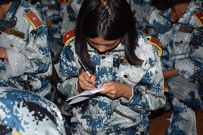 小故事,大道理。聽完“老教授”的回答,孩子們?nèi)粲兴。人格的較量?那是怎樣的一種較量?帶著疑問,周老師從人格的定義及心理特征、常見的人格缺陷及調(diào)節(jié)、怎樣塑造健全人格等方面闡述,孩子們聚精會神地跟著周老師了解了氣質(zhì)、能力、性格等多方面的內(nèi)容。通過60道氣質(zhì)測驗(yàn)題,更是全面了解了自己是個什么樣的人。
