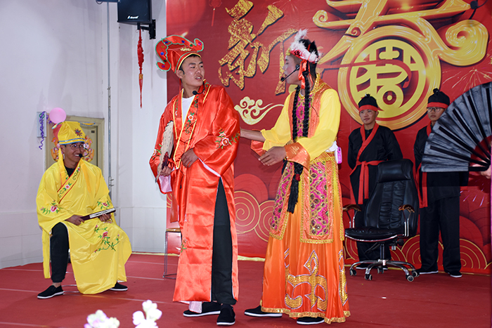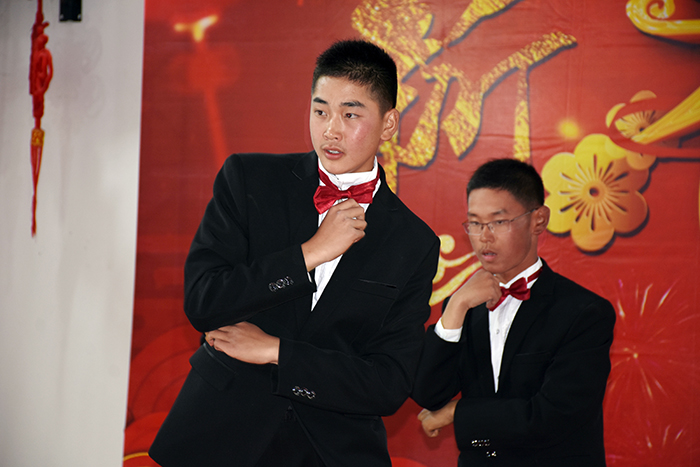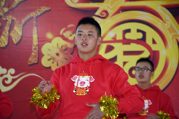 隨后,由學(xué)生王璐瑤、王佳曉和老師李月、王清恒主持的舞蹈、小品、朗誦、獨(dú)奏等14個精彩節(jié)目輪番登場。伴隨著一班、三班、十六班帶來的開場舞《恭喜發(fā)財》,晚會正式拉開帷幕,大家在熱情的旋律中開心地感受著濃郁的過年氛圍。