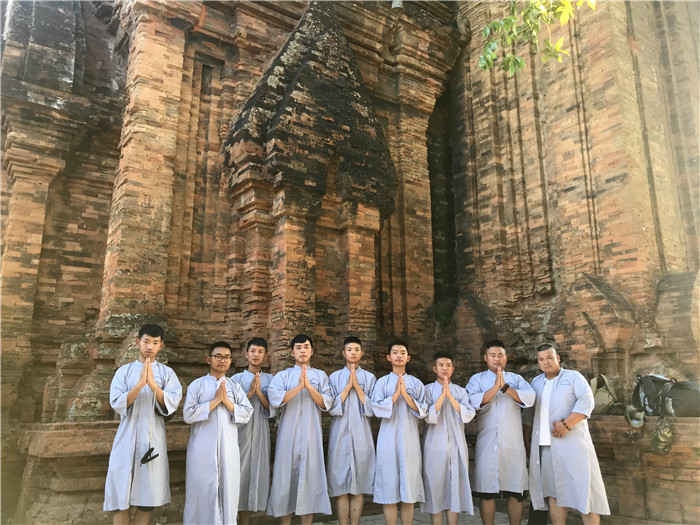 根據(jù)行程安排,孩子們9號(hào)到達(dá)目的地后,卸下航程的疲憊,美美睡了一覺(jué),10日一大早品嘗了當(dāng)?shù)氐拿朗澈螅闱巴鶇⒂^芽莊最重要的歷史遺跡——占婆塔。這座隱藏在芽莊的“小吳哥窟”,站在其頂部平臺(tái)眺望,芽莊碧藍(lán)的海港都盡收眼底。這里信奉師婆,受印度文化影響很深。印度教徒稱占婆女神是印度教希瓦神的化身,越南佛教徒稱她為天依女神,保護(hù)著靠海吃海的漁民,相當(dāng)于中國(guó)漁民心目中的媽祖。不斷更疊的歷史,讓曾經(jīng)這座占婆人的神祗在各種文化親潤(rùn)下發(fā)生著變化,今天的遺址上,既能看到歷史變化的痕跡,也能體味到越南人民宗教信仰的永恒。