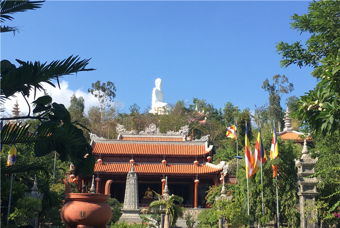 11日清晨,伴著金色的陽(yáng)光、新鮮的空氣,新的一天拉開帷幕。或許,剛來(lái)芽莊時(shí),就會(huì)發(fā)現(xiàn),在芽莊市區(qū)任何地方都能看見(jiàn)一尊24米高的白色大佛,這便是龍山寺了。寺中的大佛安坐于蓮花之上,坐臥山巔,好似在俯視眾生的歡樂(lè)與煩憂,讓人在佛光之間感悟山海奇跡。注視著當(dāng)?shù)匦疟娤囟\(chéng)禮佛的場(chǎng)景,多少會(huì)讓人的內(nèi)心能夠平靜下來(lái)。