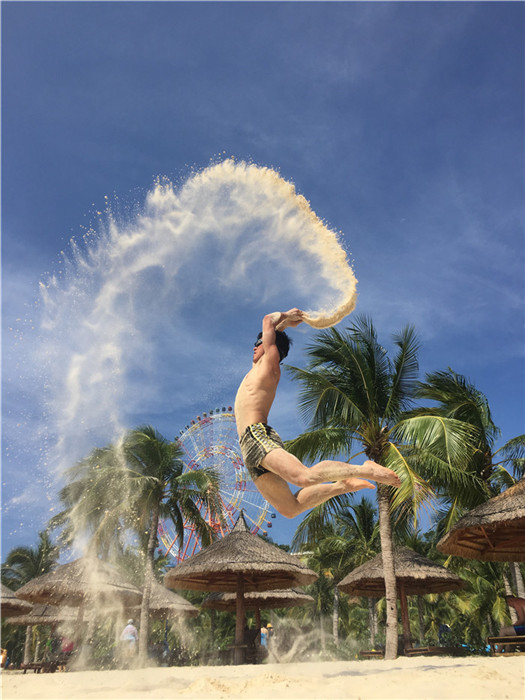 撫摸大海,是芽莊旅行不變的韻律。結(jié)束一天的行程后,孩子們又興高采烈地跑到海邊沙灘赤腳玩沙,到海里歡快游泳。溫帶的沙灘夾雜著大顆的砂礫,不免硌腳,亞熱帶的沙灘,砂礫變成了細(xì)沙,赤腳走上去,像在做足底SPA。位于北回歸線以南的芽莊沙灘,像是被篩漏過(guò)一般,綿軟細(xì)柔的觸感,更與人親近,孩子們?cè)谶@里玩得不亦樂(lè)乎。