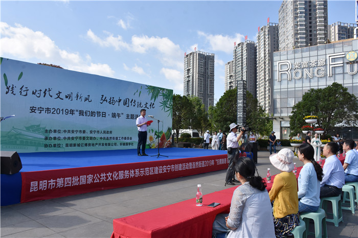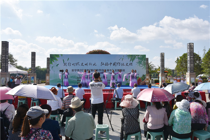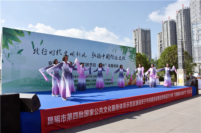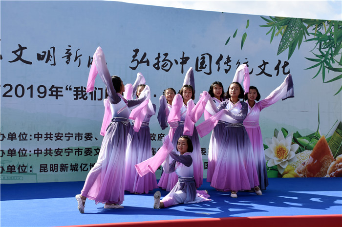 在端午節(jié)前一天,由中共安寧市委、安寧市人民政府主辦,中共安寧市委文明辦、中共連然街道工作委員會承辦的2019年“我們的節(jié)日•端午”主題活動在東湖廣場舉行。我校受邀參加,并組織部分女生到現(xiàn)場表演了古典舞蹈《端午•屈原》,孩子們漂亮的服飾、優(yōu)美的舞姿、燦爛的笑容贏得了臺下雷鳴般的掌聲。