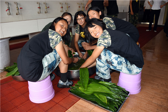 6月7日上午,全體師生在食堂忙碌又精心地準備著包粽子的材料。在老師的指導(dǎo)下,孩子們清洗粽葉、洗米剪繩、分裝糯米、花生、紅豆等餡料到不同桌子。不一會兒,所有材料就準備就緒,大家開始熱熱鬧鬧地包起了粽子。師生們把粽葉做漏斗狀、填糯米、放餡料、壓緊實、封口、彎腰拿繩綁好,有的選手全神貫注,一氣呵成;有的注重細節(jié),精美扎實;有的拿出奇招,調(diào)整節(jié)奏,提高效率。一時間粽葉飛舞,絲線穿梭,一個個玲瓏而秀氣的粽子很快便誕生了。有三角狀的,有馬蹄型的,還有扁長型的......