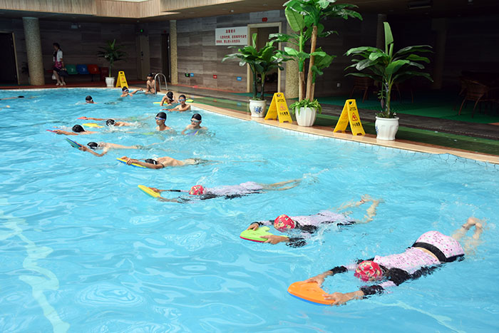 經(jīng)過學校前期的嚴密部署和周密安排,成立專門領(lǐng)導小組,對課程的設(shè)置,以及教學中遇到的問題作全面考慮,集思廣益,保證游泳課順利、安全開課。早在開課前,學校便多次對同學們進行了充分有效的安全教育,要求全體同學嚴格按照教練的要求在泳池內(nèi)開展學習。為確保教學的質(zhì)量與安全,學校聘請教學經(jīng)驗十分豐富的專業(yè)游泳教練,不僅技術(shù)過硬,而且擅長針對青少年開展游泳教學,保證上課質(zhì)量。療養(yǎng)院的領(lǐng)導也給予了大力支持和保障,為孩子們提供了優(yōu)質(zhì)的環(huán)境和服務(wù)。游泳館嚴格按照《游泳池水質(zhì)標準》進行水質(zhì)監(jiān)測,保證干凈衛(wèi)生,通風照明良好,各項設(shè)施完好,救援設(shè)備充足,且水溫恒溫在25—29℃。同時,游泳館還安排教練員在指定崗位隨時做好充分準備,全程嚴密關(guān)注孩子的學習,全面做好安全防護工作。