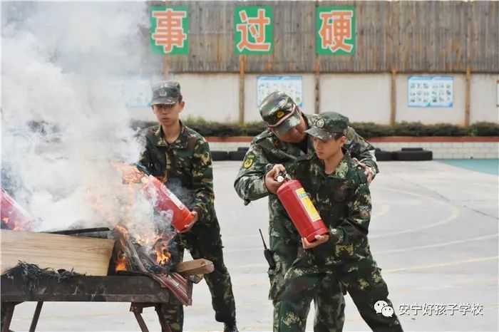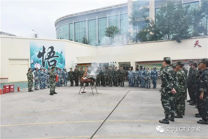 接著開始了消防撲救演練。操場上的木材點(diǎn)燃后,火苗迅速變成了熊熊大火,老師開始現(xiàn)場演示滅火設(shè)備(滅火器、高壓水槍、滅火毯、濕毛巾)的使用方法,并指導(dǎo)全部學(xué)生親自操作演練。