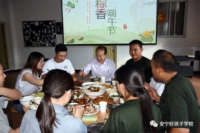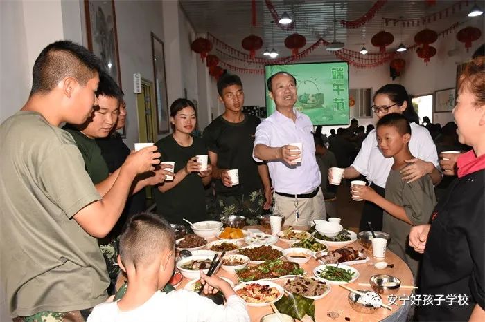 傍晚,一個個香氣撲鼻的“粽子”新鮮出爐了,一桌桌色香味俱全的美食便呈現(xiàn)在大家眼前。餐前,學(xué)校理事長袁戰(zhàn)穩(wěn)向全體師生致以節(jié)日的問候,希望大家都能品嘗時光的香甜,在往后的日子里平和安康。隨后,在袁理事長“開席”的一聲令下后,大家共同舉杯,互道“端午節(jié)安康”,晚宴正式開始了。孩子們迫不及待地吃著豐盛的晚餐,品嘗著自己的“作品”,笑容分外甜蜜。席間,袁理事長還親切地走到孩子們中間敬茶祝福。感受著袁理事長關(guān)切的話語、和藹的笑容,同學(xué)們心里暖暖的!鏡頭下,孩子們還紛紛向老師和遠方的父母送去節(jié)日的祝福,祝愿他們端午安康。整個場面洋溢著濃郁的節(jié)日氛圍。