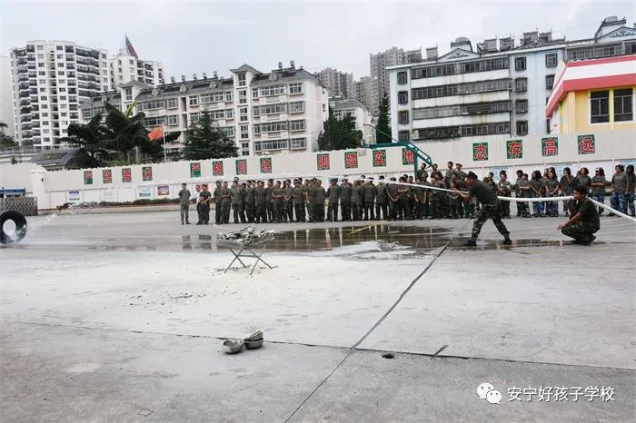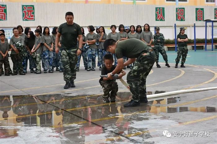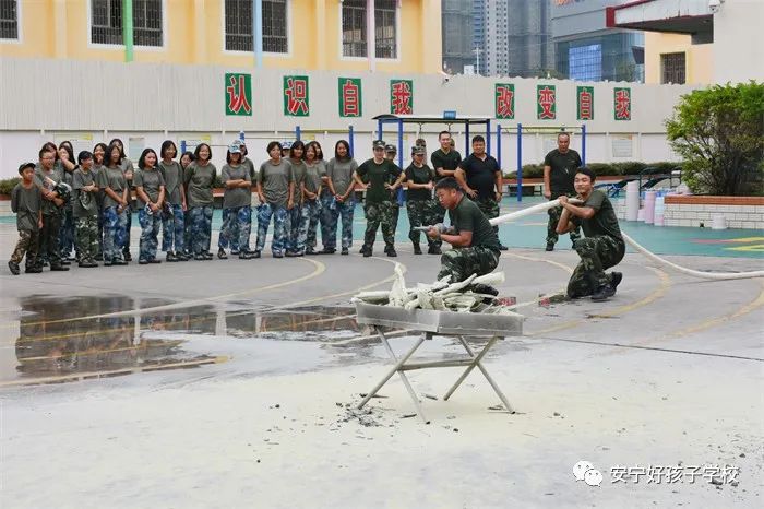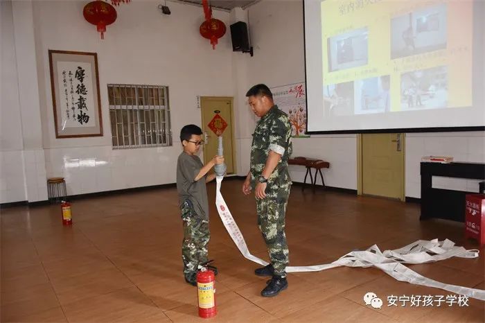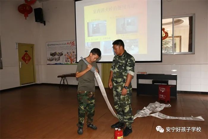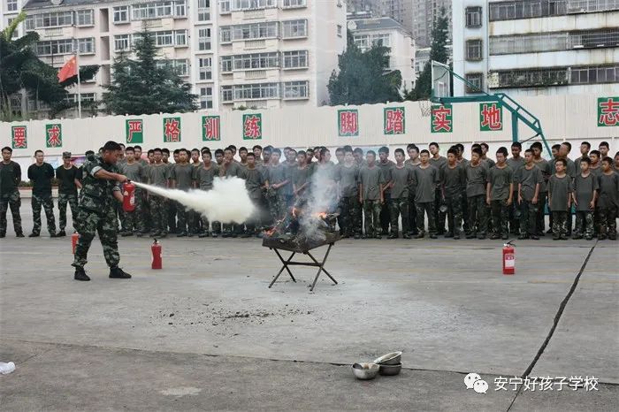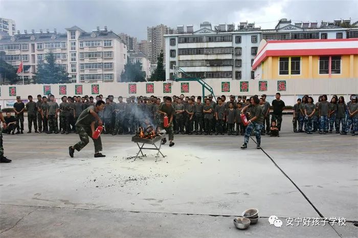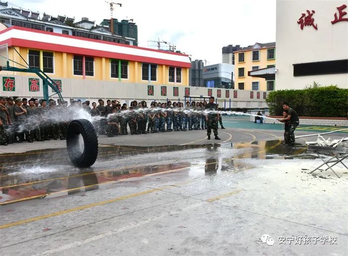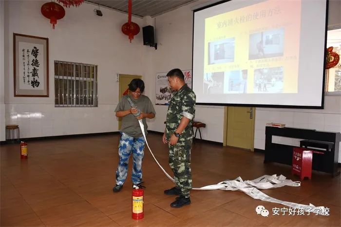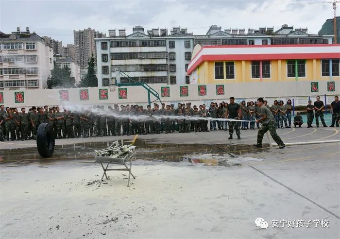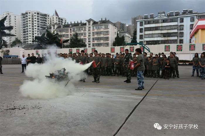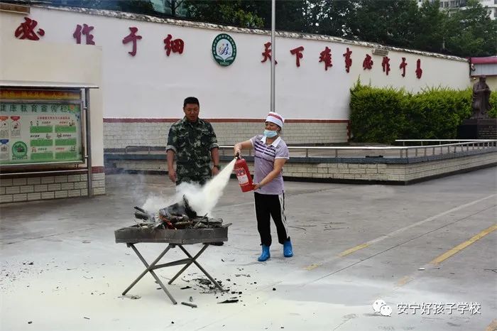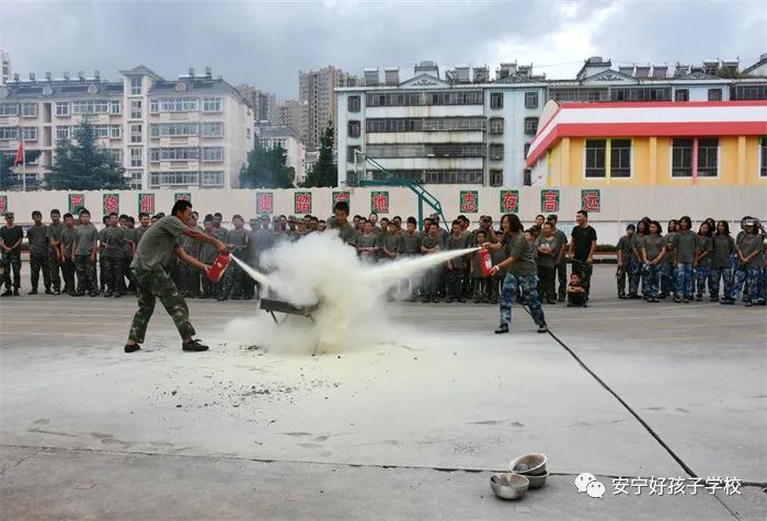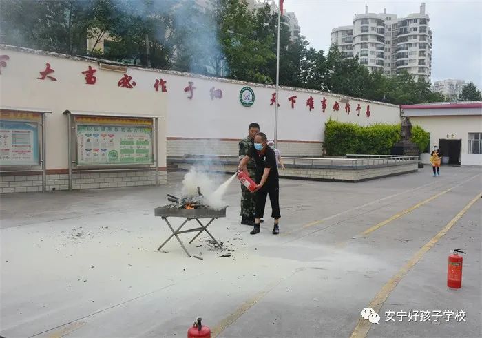 最后,進行了撲救演練。操場上的木材點燃后,火苗迅速變成了熊熊大火,老師開始現(xiàn)場演示滅火設(shè)備(滅火器、高壓水槍)的使用方法,并指導(dǎo)全部學(xué)生親自操作演練。