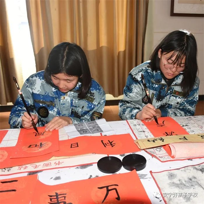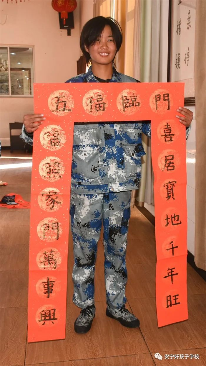 同學(xué)們在書寫之余,還紛紛拿起自己的作品,進(jìn)行拍照留念,并把新一年的美好祝福絡(luò)繹不絕地相繼寄回家,讓春聯(lián)帶著祝福溢滿自己的家園。