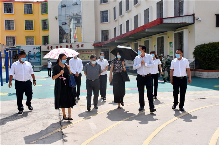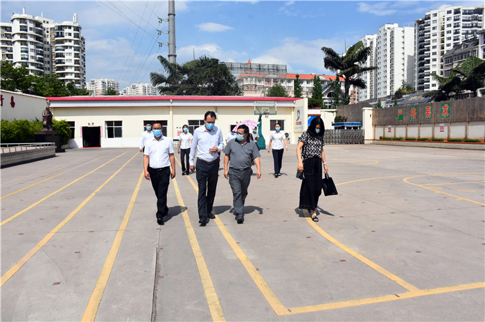 2020年5月18日下午,安寧市教體局教育科科長(zhǎng)畢加昌率局機(jī)關(guān)干部王艷莉、安寧市疾控中心梁醫(yī)生、市基教中心李老師等蒞臨我校檢查指導(dǎo)疫情防控工作。