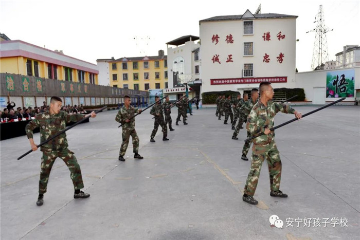 匯演尾聲,王理事長作了精彩點評:“今天我們來到好孩子學(xué)校進行調(diào)研,感受頗深。第一是熱情,此次調(diào)研不僅有我們省廳潘處長和市教體局劉副局長的一路陪伴,而且來到好孩子學(xué)校以后,學(xué)校的接待也很熱情,讓我們感受到了春城人民的淳樸好客!第二是贊嘆,好孩子學(xué)校辦學(xué)規(guī)范、理念獨特、措施有力、氛圍濃厚、成效明顯,校園干凈整潔,師生精神風(fēng)貌良好,人文關(guān)懷做得也很好,是個既嚴厲又溫暖的育人之地,給我們留下了非常好的印象。第三是驚訝,學(xué)校短短十年間,就改變了數(shù)千名孩子,真的讓我們非常驚訝。我不禁想起教育的一句話‘教育的特殊性,是為了人的成長來服務(wù),是一個生命影響一個生命的過程!煤⒆訉W(xué)校緊緊抓住做教育的這個真諦,嚴格訓(xùn)練、嚴格管理、嚴格要求,從心理學(xué)角度,認真分析問題成因;從好習(xí)慣入手,狠抓良好習(xí)慣的養(yǎng)成教育?梢娫谂囵B(yǎng)孩子行為習(xí)慣、心理健康上下了大功夫,才能使那么多孩子回到了正常的主流生活中,你們?yōu)楫?dāng)?shù)厣鐣C合治理做出了很大貢獻。今天孩子們的表演也非常精彩,足以看出日常的訓(xùn)練有多么規(guī)范,也可見學(xué)校是多么注重孩子們的興趣培養(yǎng)與激發(fā)。總之,不枉此行!”