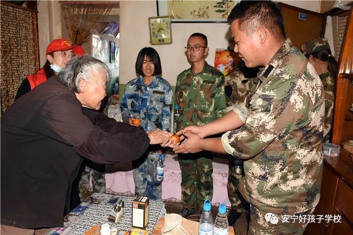 師生們圍坐在朱奶奶身旁拉起了家常,噓寒問暖,朱奶奶也饒有興致地說著自己的近況,不時(shí)感謝著大家給她送去的生活用品(大米),也表示自己雖然一個(gè)人生活,但也一定會(huì)好好照顧自己,讓大家別擔(dān)心。但說起往事,回憶起自己天各一方的家人時(shí),朱奶奶臉上難掩憂傷。我們在感嘆她頑強(qiáng)的生活能力時(shí),也對她的遭遇無限心疼。交談間,朱奶奶還不時(shí)把桌上的水果、糖果等小零食塞到師生手中,頻頻說著“孩子們,快吃”。慈愛的話語,溫暖的交流,一次次拉近了師生與朱奶奶之間的距離。