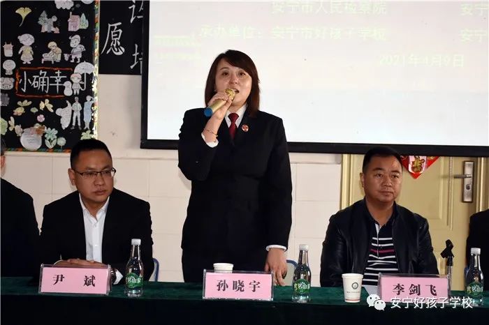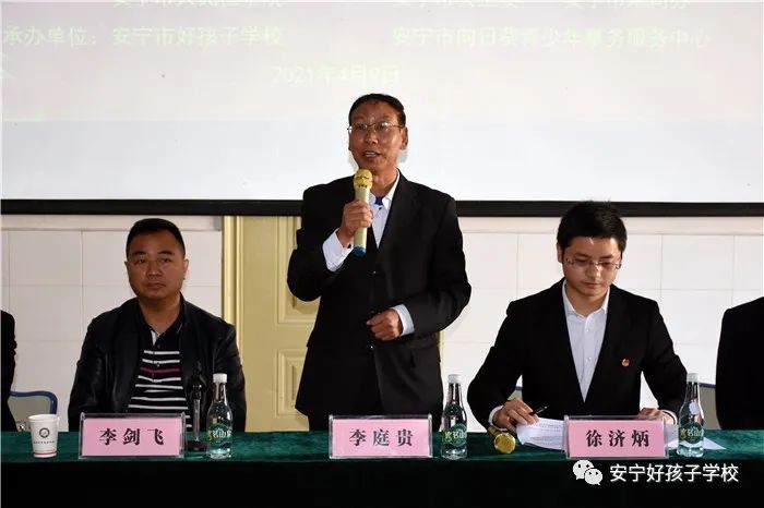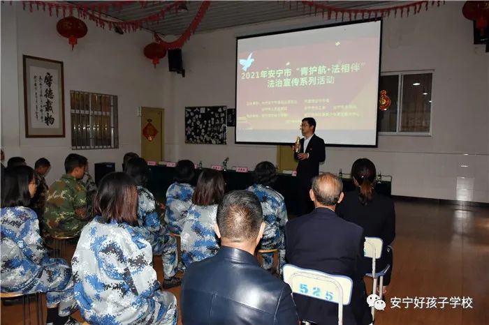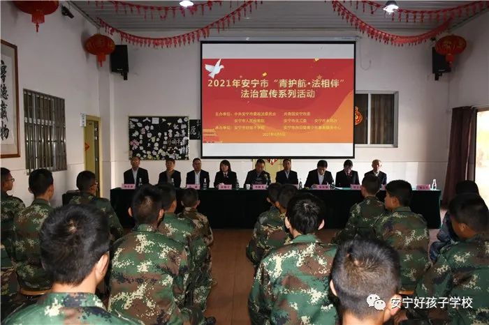 為加強(qiáng)青少年法治教育和思想道德教育,預(yù)防和減少未成年人違法犯罪,提高未成年人自我保護(hù)能力,推進(jìn)依法治市,建設(shè)平安安寧, 2021年4月9日上午, 由市委政法委、共青團(tuán)安寧市委、市人民檢察院、市關(guān)工委、市未司辦主辦,安寧市向日葵青少年事務(wù)服務(wù)中心、安寧好孩子學(xué)校承辦的“青護(hù)航•法相伴”法治宣傳系列活動(dòng)在我校多功能室舉行。市委政法委副書(shū)記李劍飛、市人民檢察院第四檢察部主任孫曉宇、市關(guān)工委專(zhuān)職副主任李庭貴、團(tuán)市委副書(shū)記徐濟(jì)炳、市人民檢察院和市關(guān)工委部分“五老”成員等領(lǐng)導(dǎo)出席了本次活動(dòng)。活動(dòng)由團(tuán)市委副書(shū)記徐濟(jì)炳主持。