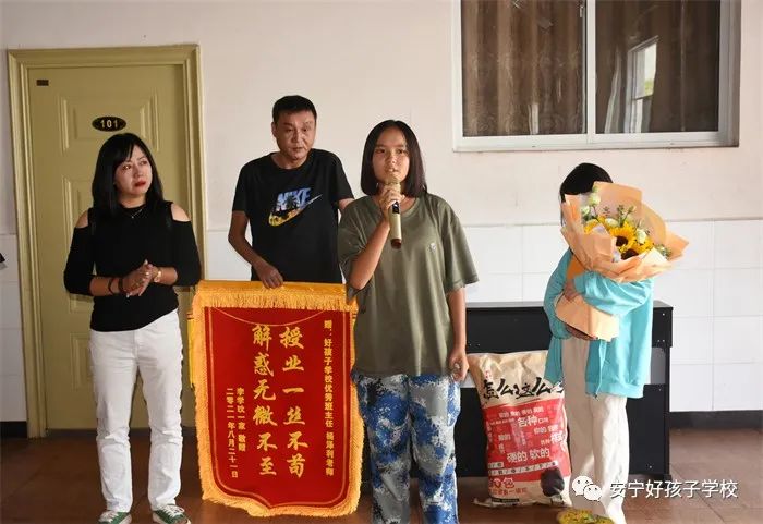 李學(xué)玟的媽媽更是幾度哽咽地說道:“今天看到李學(xué)玟的成長(zhǎng),我很激動(dòng),不知道該說什么好,千言萬語只能說聲謝謝!謝謝老師們把她當(dāng)幼苗一樣的呵護(hù),讓她在這塊肥沃的土壤里盡情成長(zhǎng),讓她的性格變得更加溫潤。孩子們,父母都是愛你們的,不要怪父母把你們送來這里吃苦,你們不在父母身邊的日子,爸爸媽媽無時(shí)無刻不在牽掛著你們,想念著你們。每當(dāng)學(xué)校的公眾號(hào)推出文章,我們都會(huì)認(rèn)真去讀,去尋找你們的身影。我們也是第一次做父母,也在努力改變和你們相處的方式,希望你們也能接受我們的不完美!”